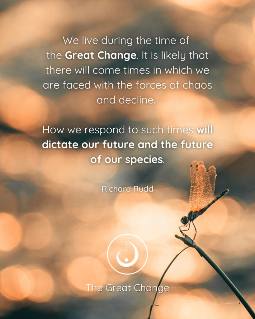 ‘In this line are gathered huge shifting forces and energies. If we tighten up before an initiation, we invite calamity. If we soften and become supple and surrendered, we invite magic. The whirlwind represents unexpected and massive change. If we are silently attuned to the soul, we can anticipate such times, just as our ancestors did. Likewise, the creatures of the earth can detect the hidden currents of a coming storm. Sometimes these storms stir up great emotions in our lives, or feelings of sadness or loss, but we are also invited to view the changes from the vantage point of the soul, which revels in the sea of change. The soul knows no death, so such times are received in the spirit of initiation – a wave we have chosen to ride at the deepest level. Knowing this, we can let go of feeling a victim entirely and trust in the whirlwind’.
